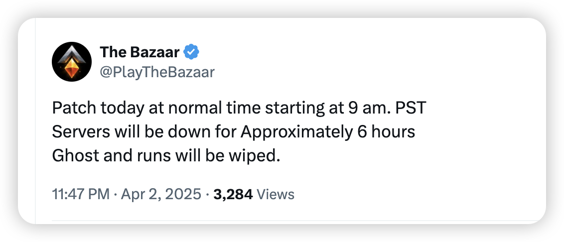 The Bazaar is getting another update! What’s in store this time? Here’s the maintenance schedule: